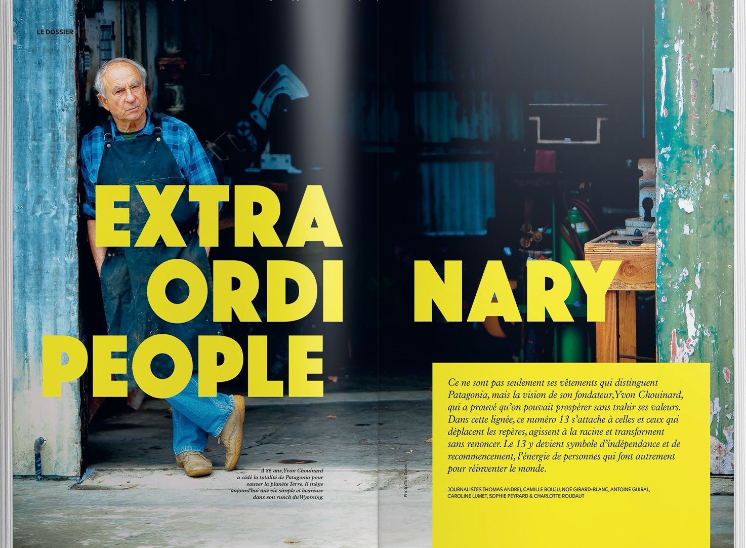 - Comme une gageure, le magazine est allé à la rencontre de treize personnalités qui déplacent les lignes, notamment en faisant repousser les océans, reculer les géants du pétrole, en cultivant du bio pour tous, en se débarrassant du plastique…